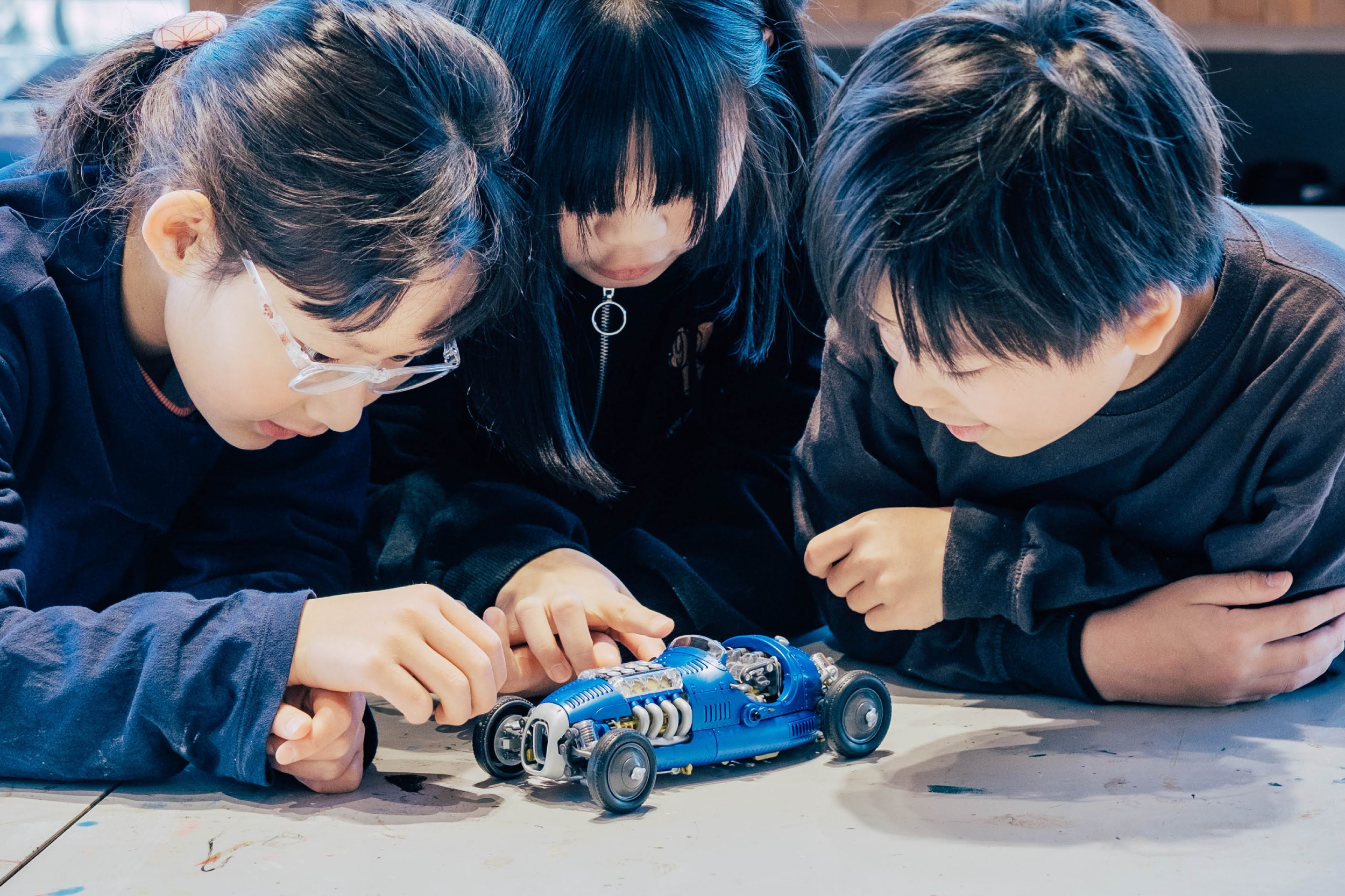 車が走るしくみを、プラモデルを組み立てながら体感できるワークショップです。