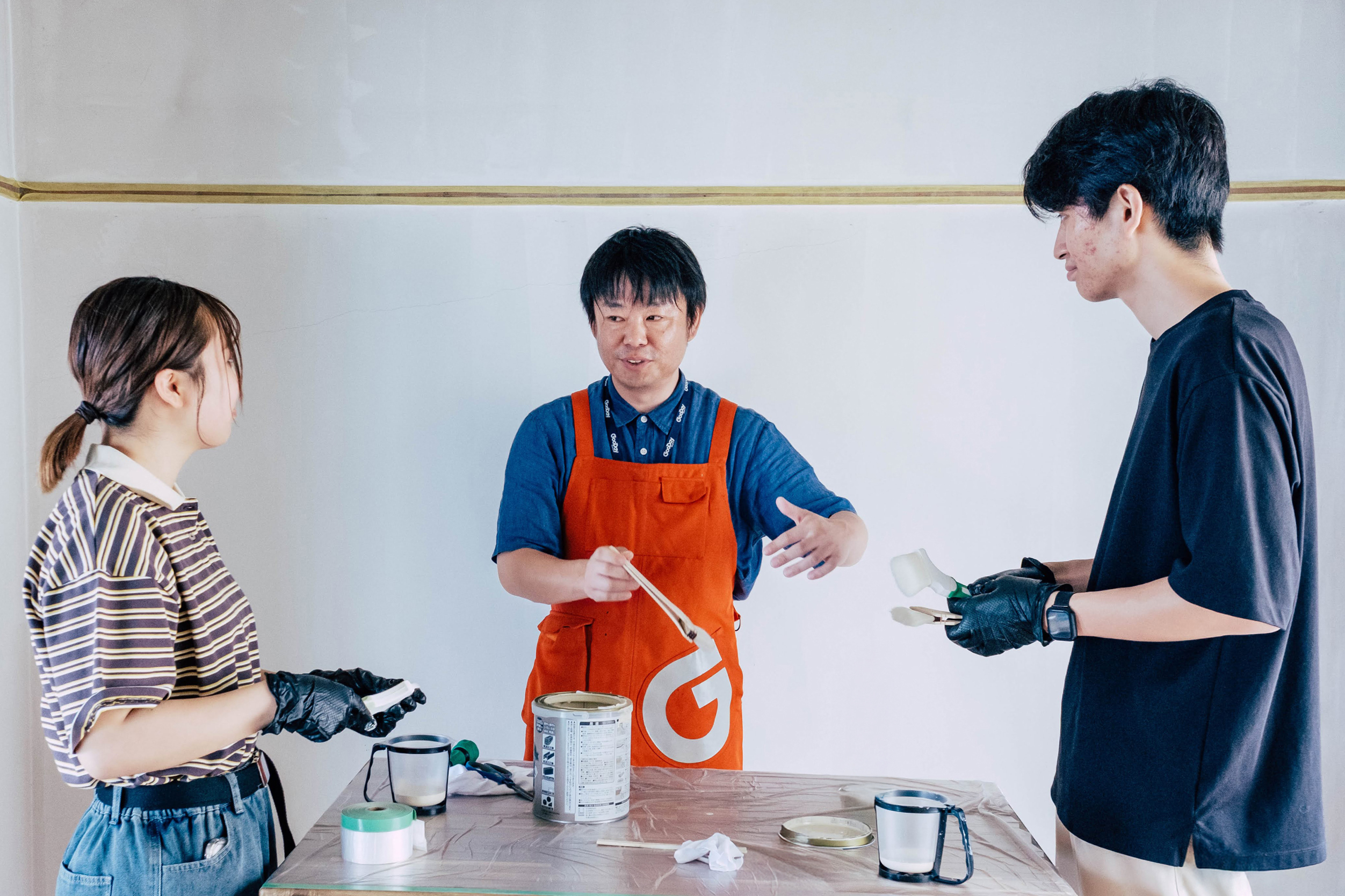 グッデイのDIYアドバイザーが養生の方法やハケトローラーの使い分けなど、塗装の基本のキから丁寧に教えます。